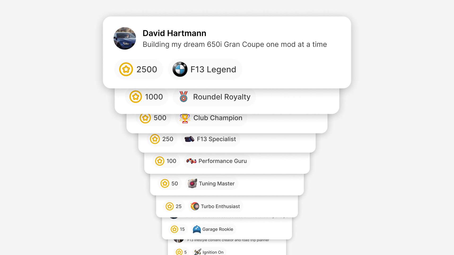 Badge levels create pure progression. As members earn points, they unlock higher badge levels. The platform comes pre-built with a 9-level badge system ready to use: