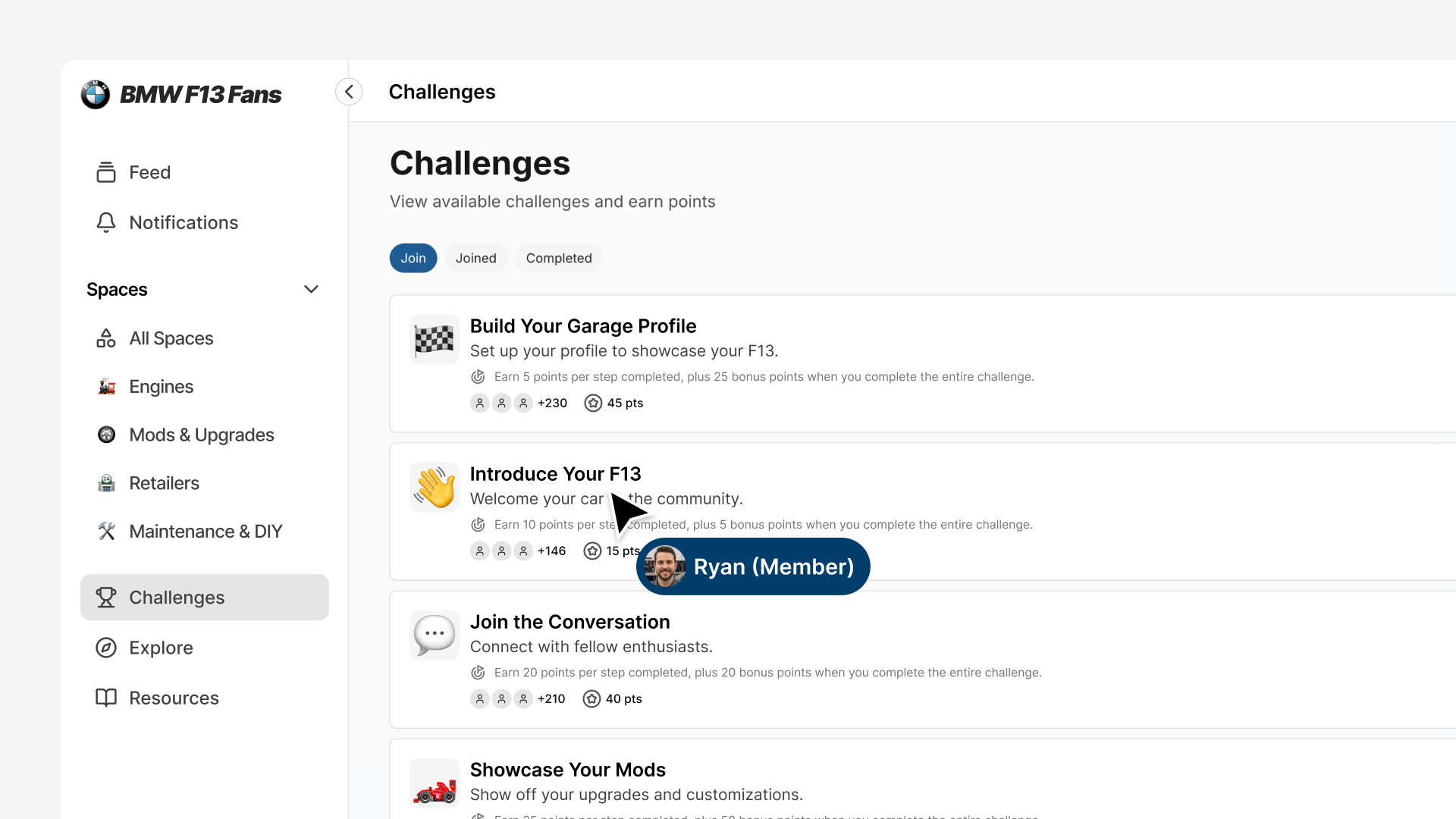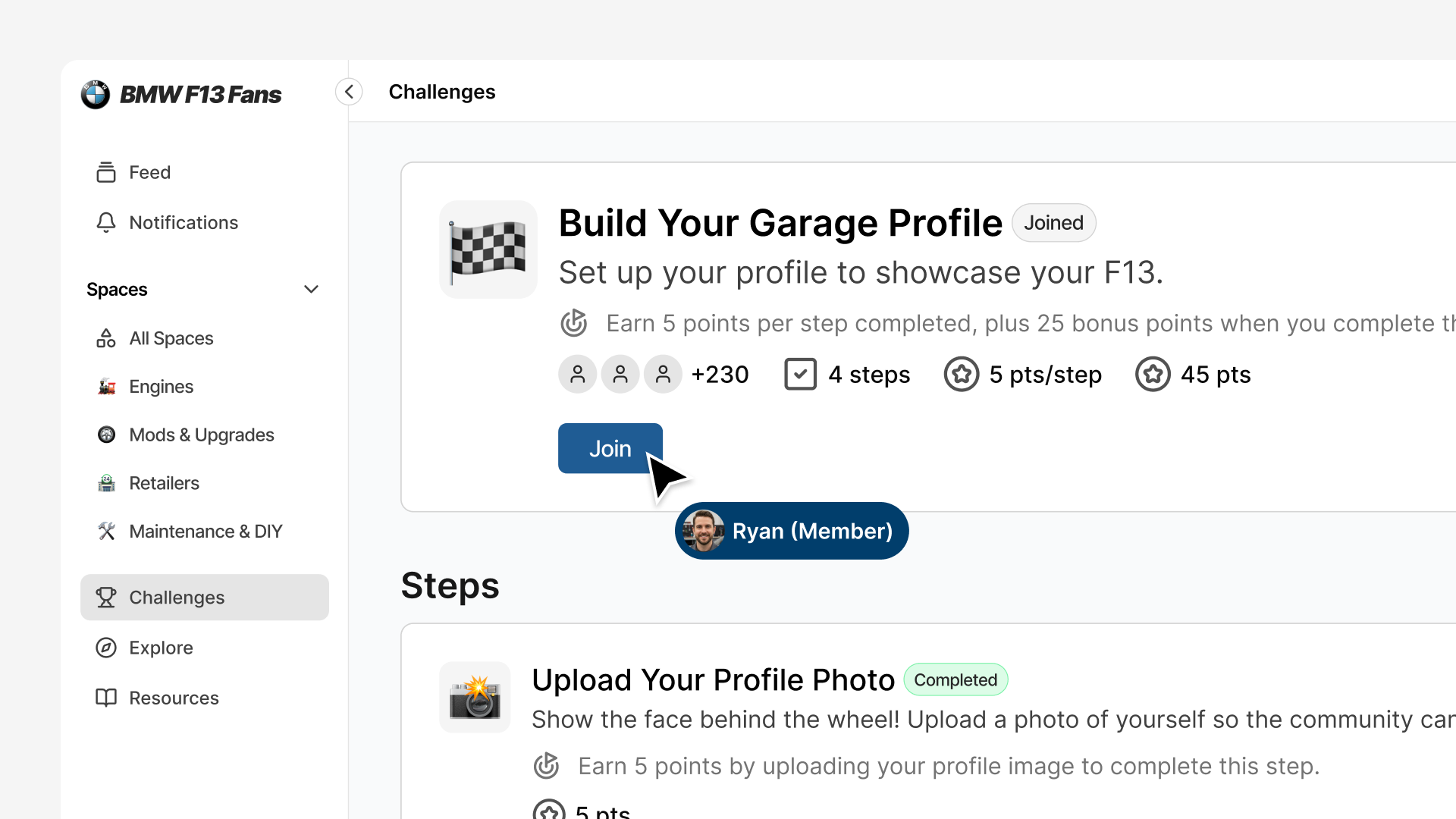 Join with Intent: When a challenge resonates, members click Join Challenge to opt in. They're making an active choice to participate, which drives higher completion rates than automatic enrollment.