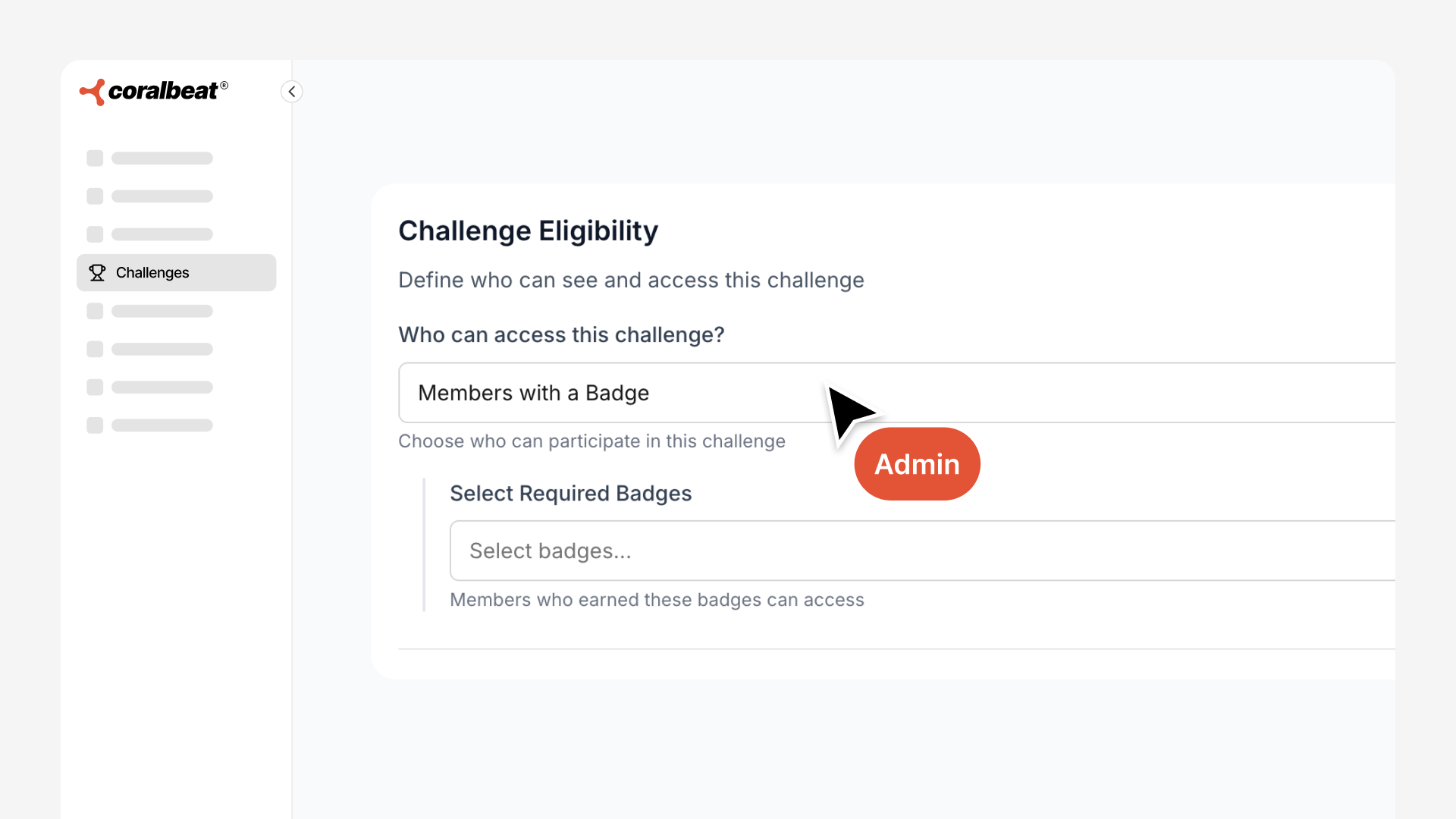 Badge levels unlock as members earn points and become prerequisites for more advanced challenges. This creates a clear member journey: join → complete onboarding → earn first badge level → unlock more advanced challenges → access exclusive leadership challenges.