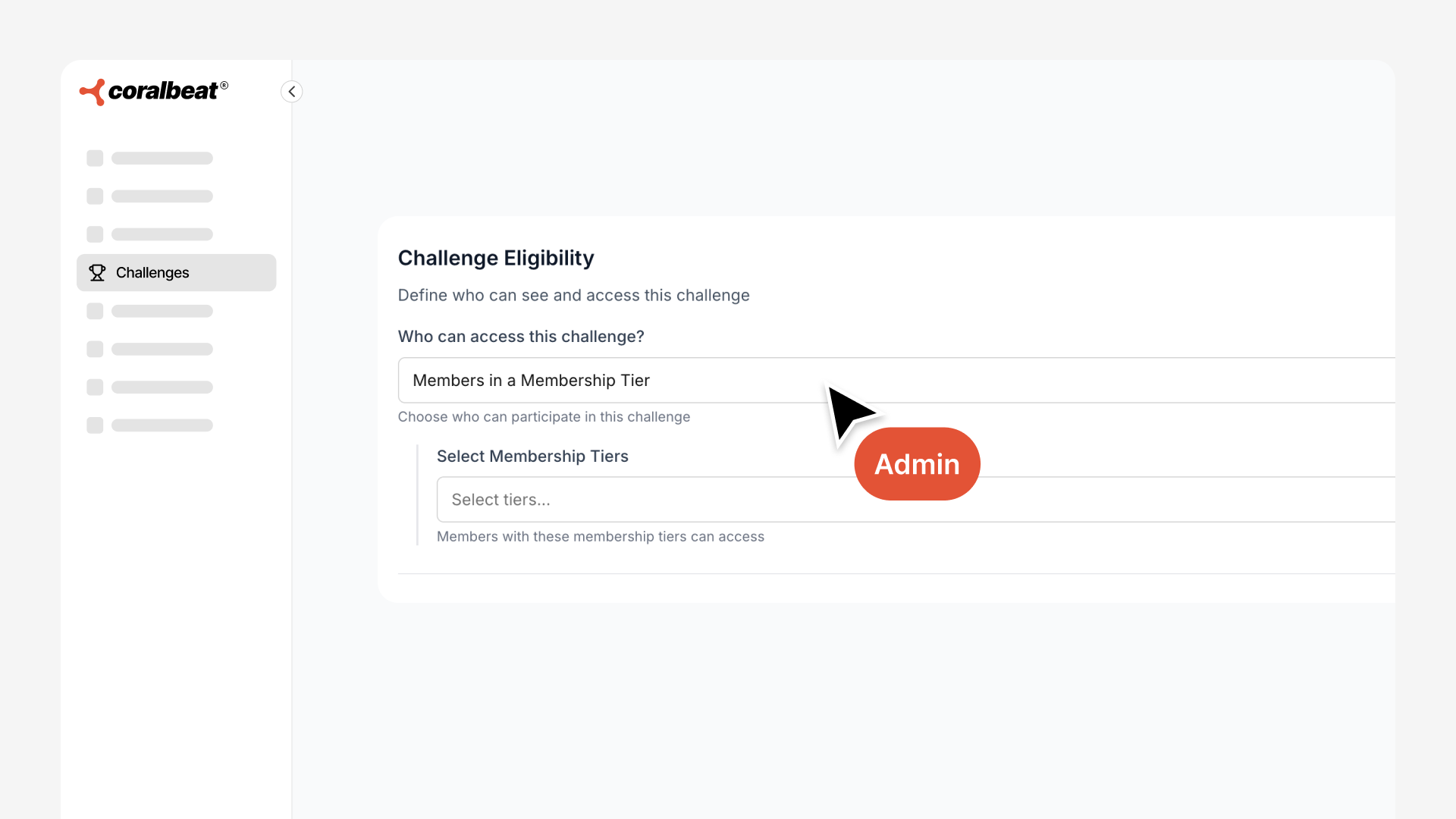 • Members in a Membership Tier: Limit to specific subscription levels to create exclusive premium challenges