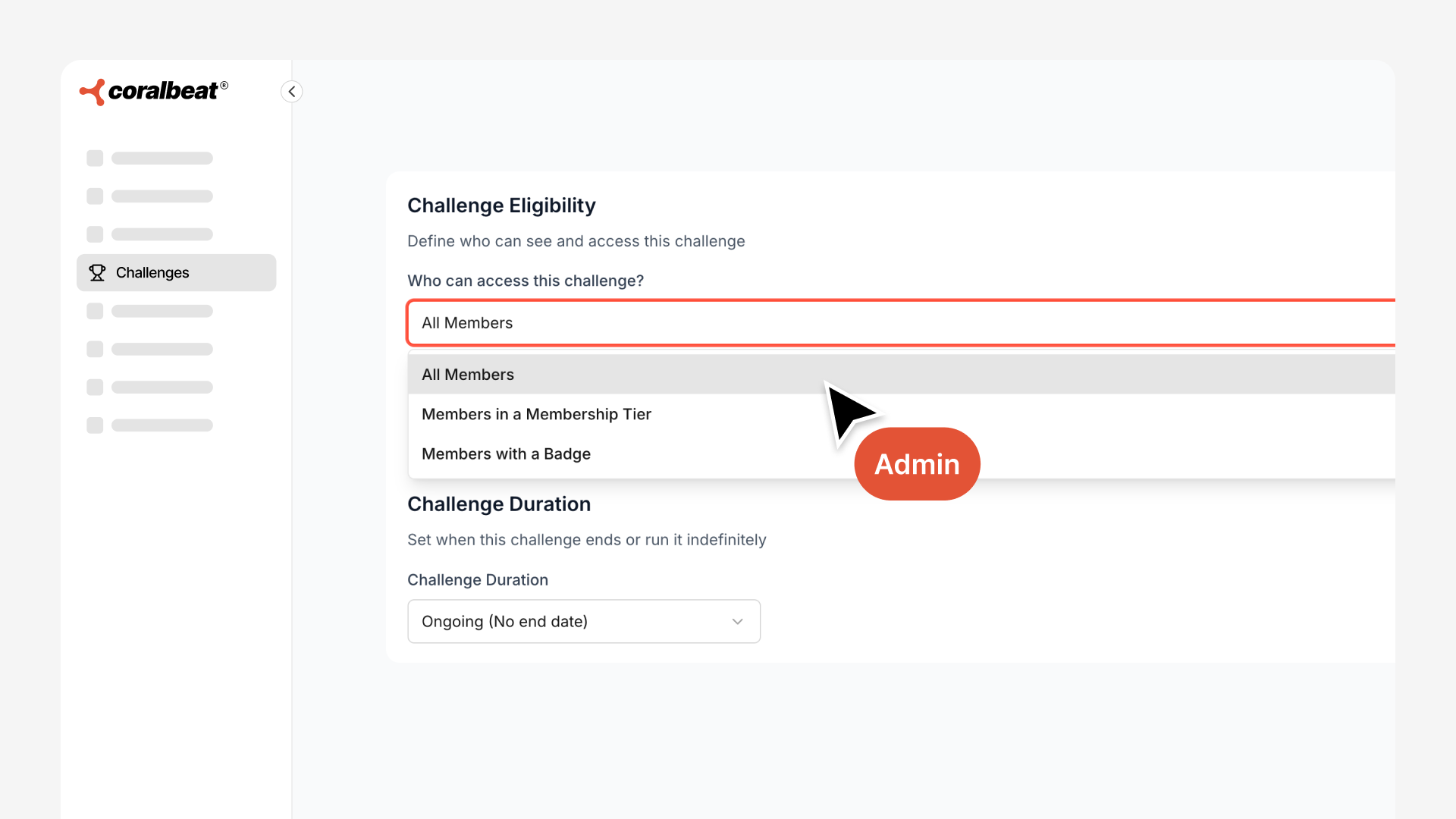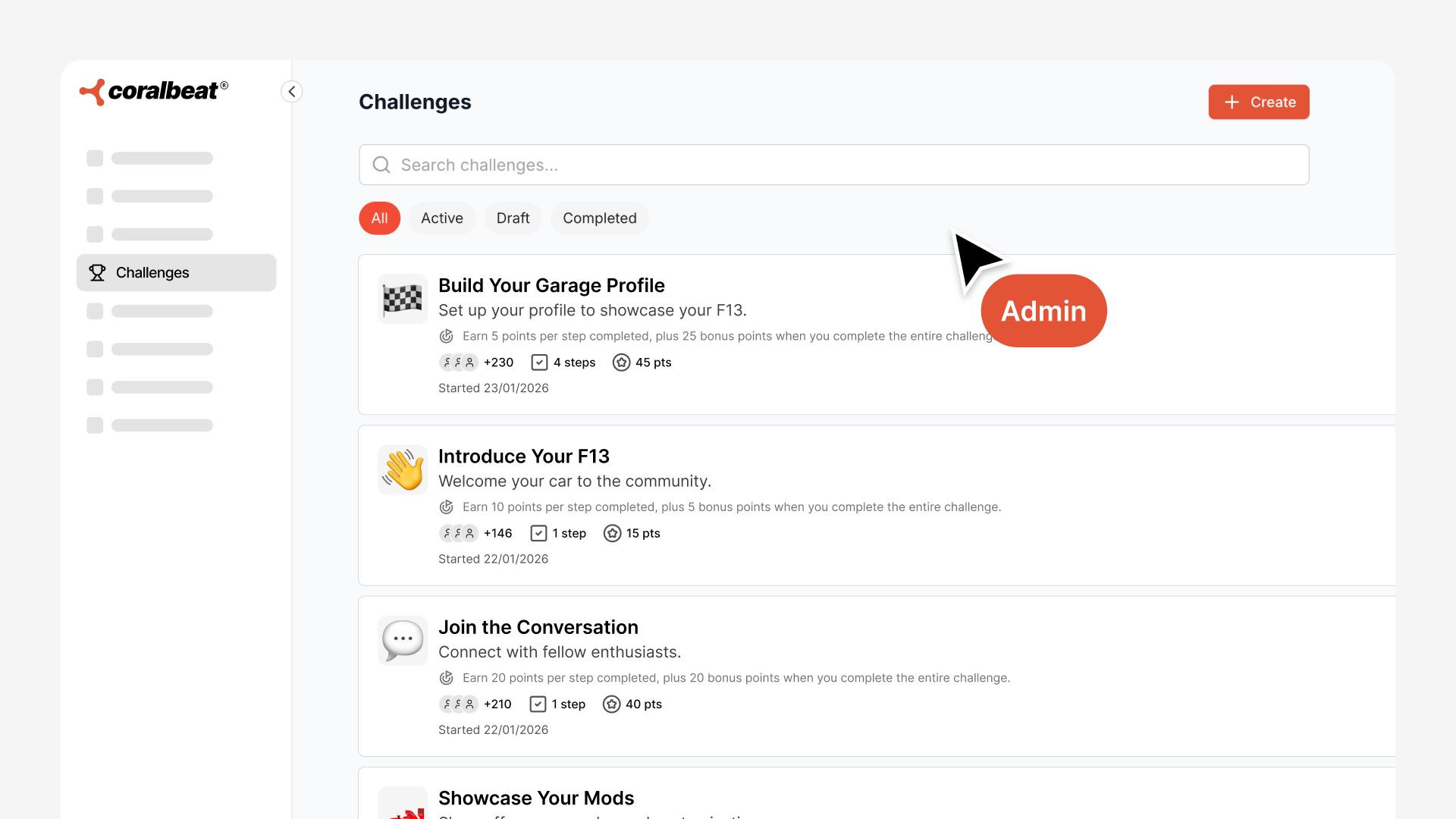 Challenges are baked directly into your community platform. No third-party integrations. No complex setup.