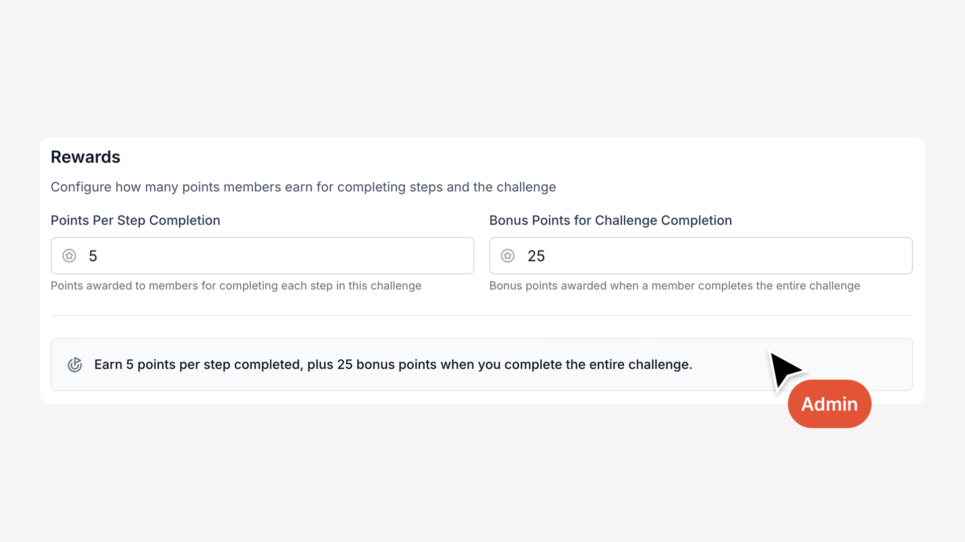 • Bonus Points for Challenge Completion: Extra points awarded when members complete the entire challenge (incentivizes full completion)