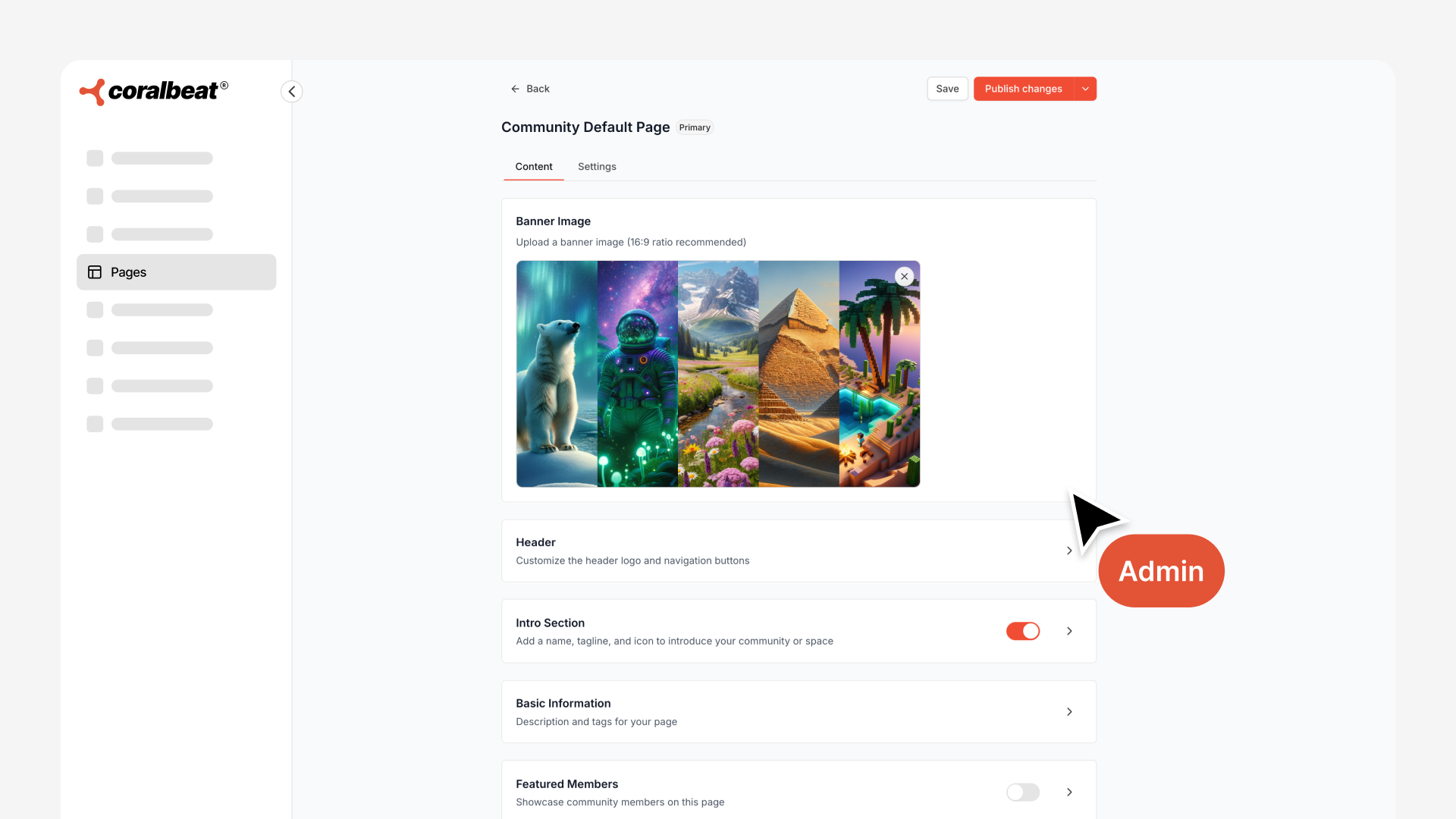 Set Your Primary Page: Mark a page as "primary" to make it your community's default homepage - perfect for your main audience or general value proposition.